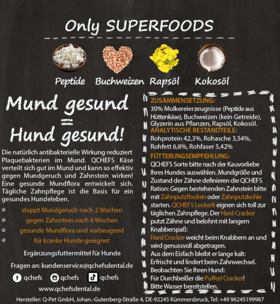 Qchefs provides better oral hygiene, health and well-being for your dog.