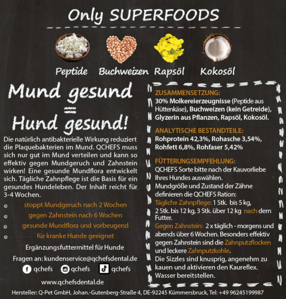 Qchefs provides better oral hygiene, health and well-being for your dog.